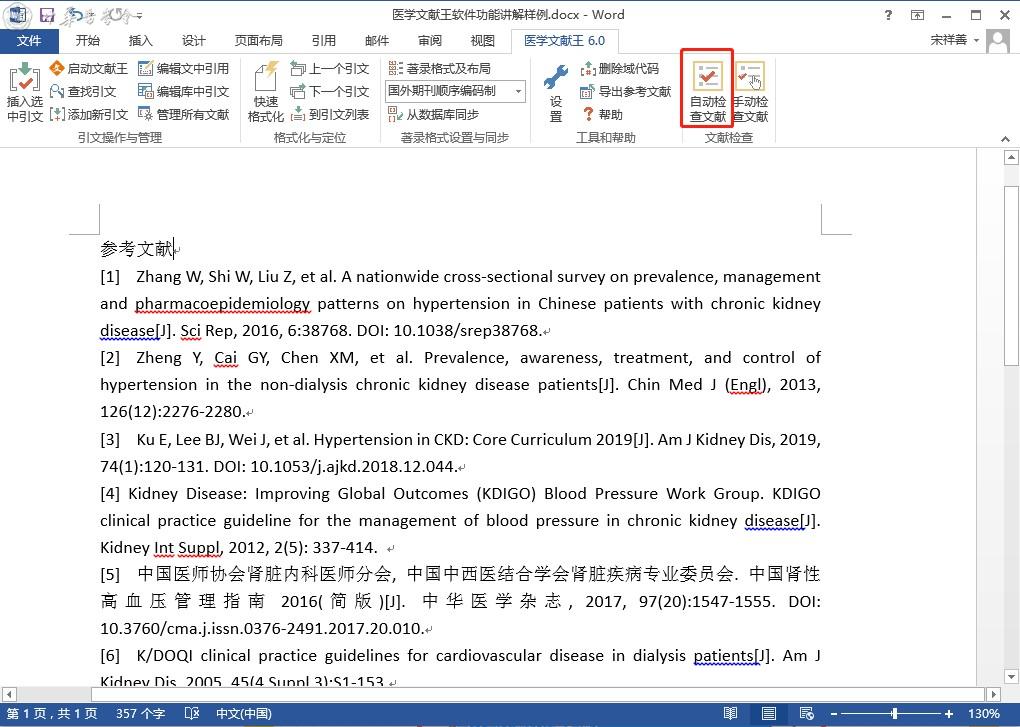 医学文献王是面向医学生、医学工作者的文献管理工具,能为您保存和管理整个职业生涯的文献资料。医学文献王V6.0版本提供了参考文献的检校服务,说明如下:
